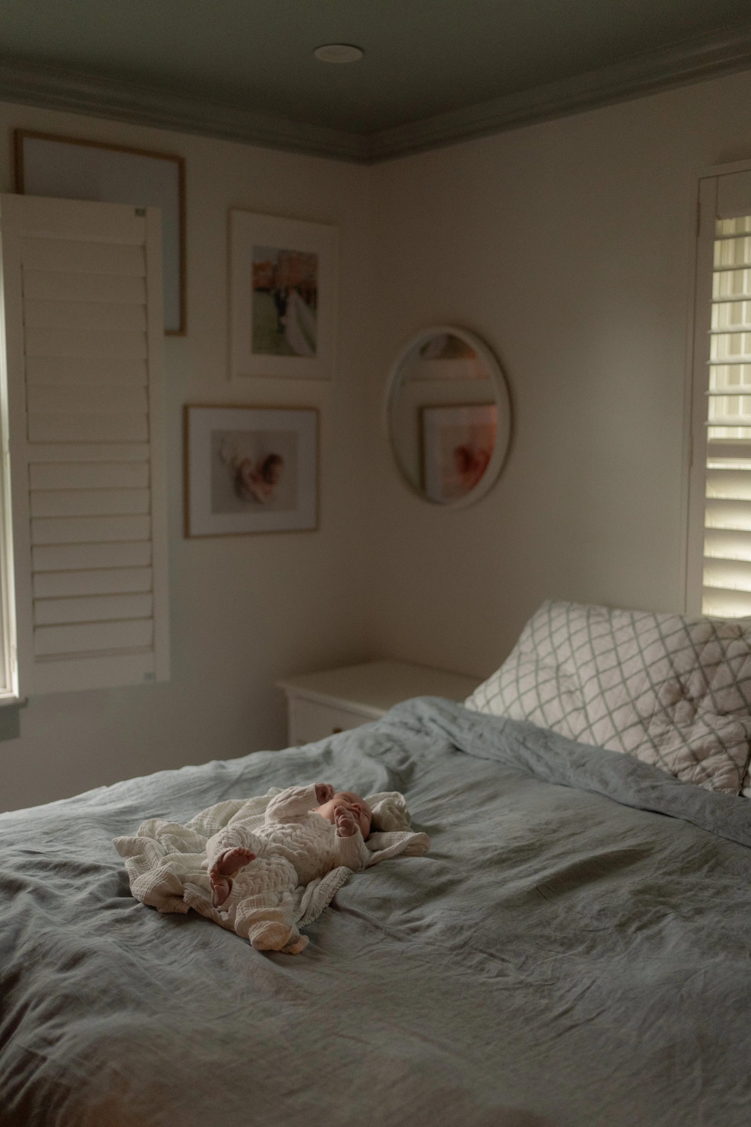 You don’t need a perfectly styled home to have beautiful photos. Before your session, I recommend tidying the main areas where we’ll be shooting and letting in as much natural light as possible by opening curtains and blinds. Neutral spaces photograph beautifully, but most importantly, your home should feel lived-in and true to you. I’ll guide you on where to shoot and help move small items as needed so you can relax and focus on enjoying time together